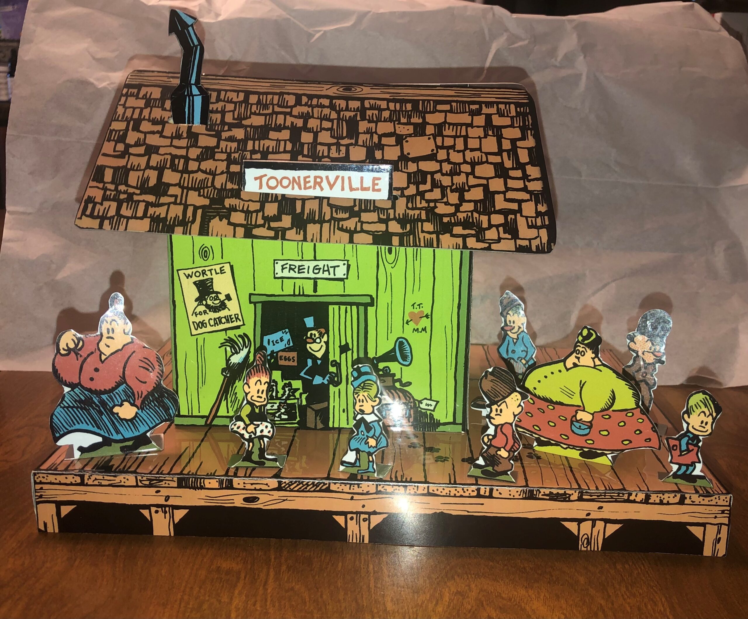 Lithographed station and 8 figures. Base measures approximately 7 1/2 x 10 1/2.
